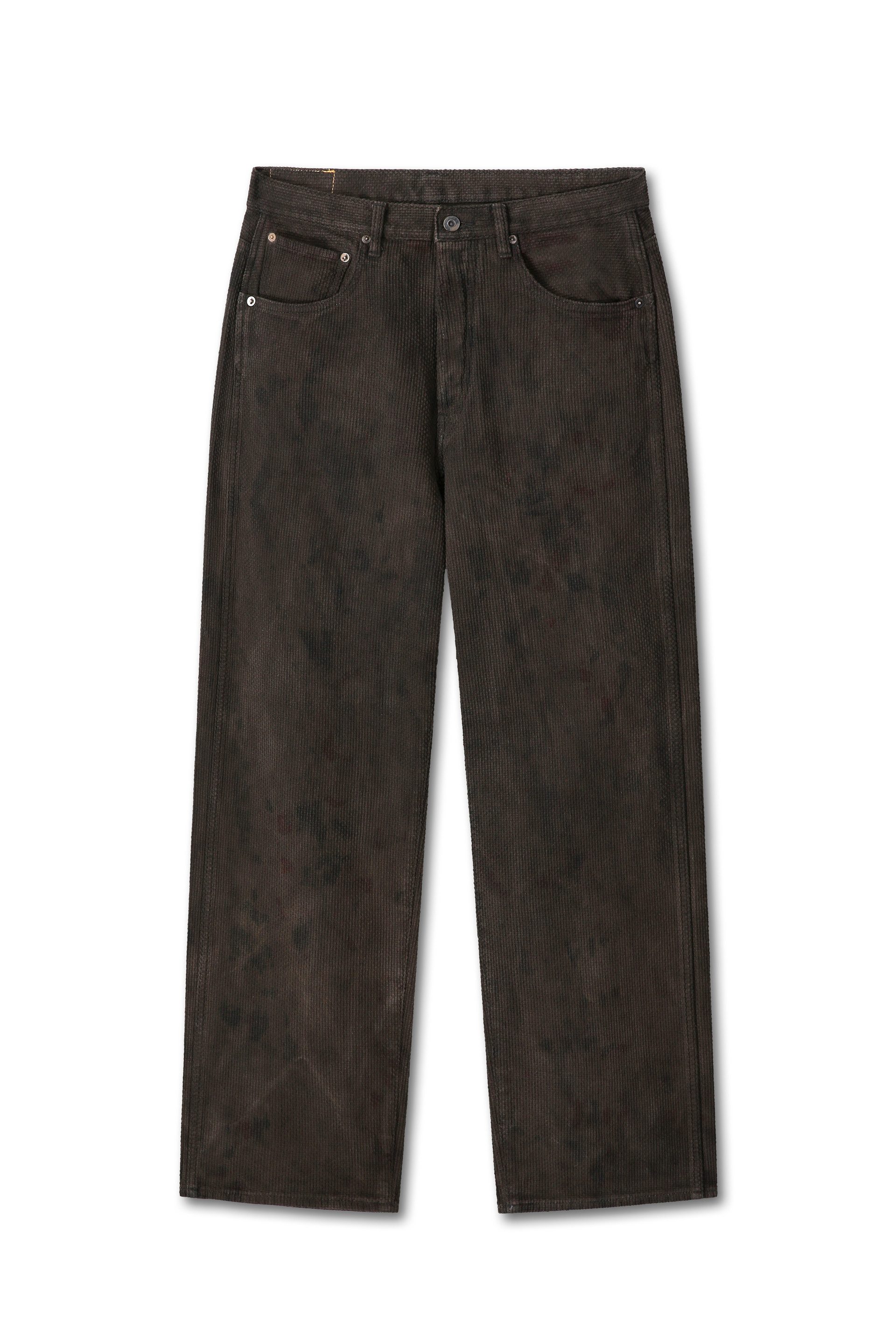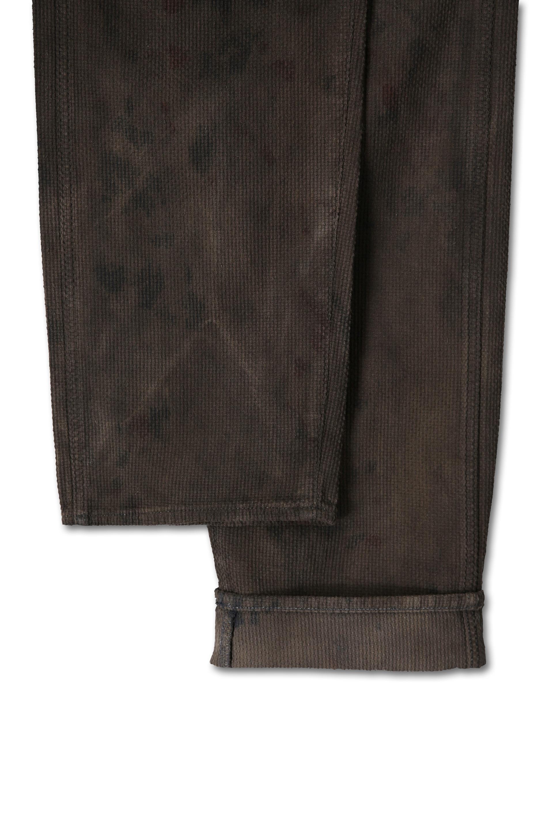 그 결과, 서로 다른 천연 염료의 흔적이 겹쳐지며 마치 문양처럼 번지고 겹친 자연스러운 패턴감이 원단 위에 형성됩니다. 또한 천연 염색과 오버다잉의 특성상 모든 과정을 동일하게 진행하더라도 결과를 완전히 같게 만들 수 없어, 각 제품은 세상에 단 하나뿐인 모습으로 완성됩니다.
