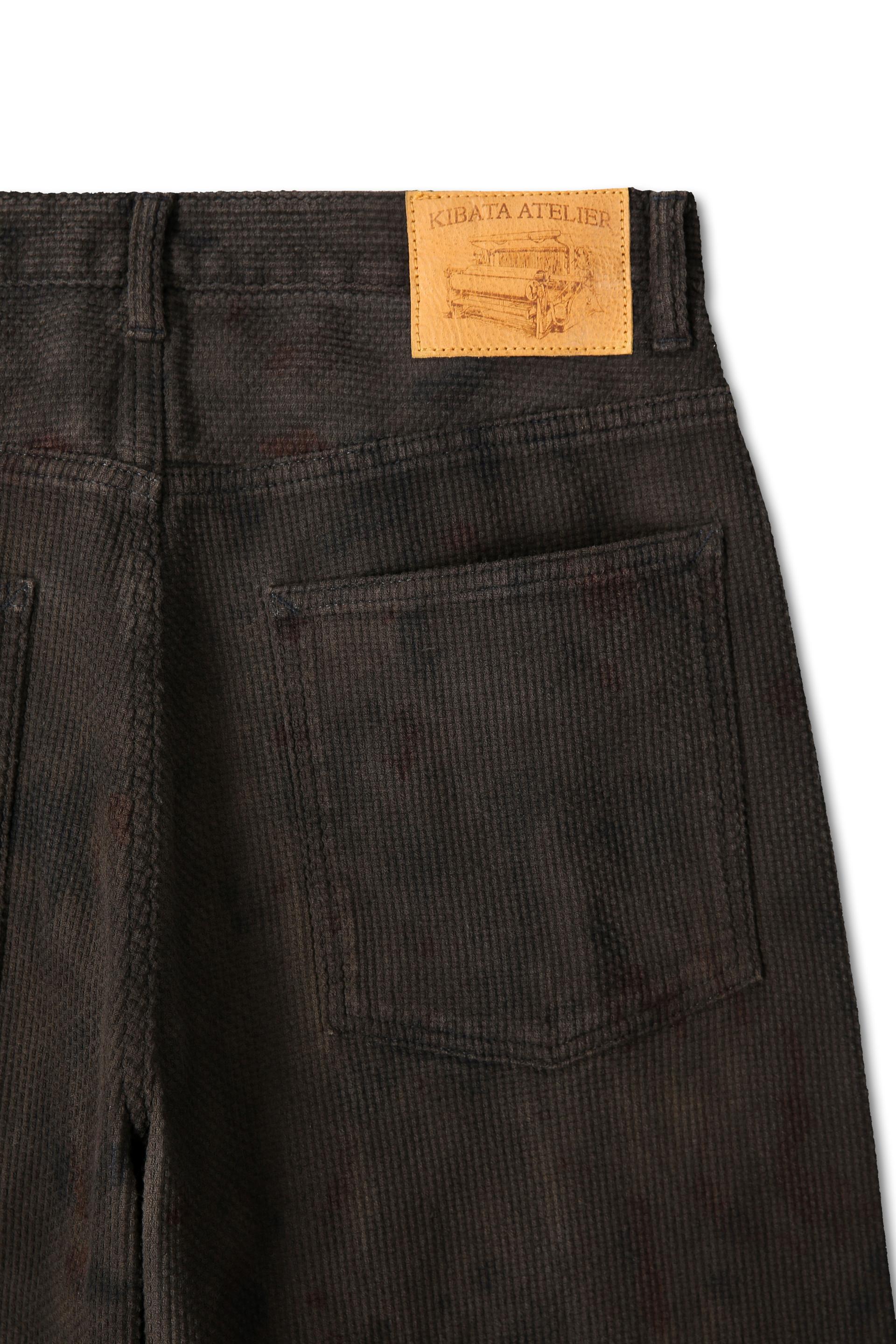 천연 염색이 깊고 고르게 스며들 수 있도록 가볍게 전처리를 한 뒤, 발효감물(카키시부)을 베이스로 넓게 입히는 염색을 1차로 진행했습니다. 이후 쪽(인디고), 양파, 케브라쵸, 아카시아 등 여러 가지 천연 재료로 오버다잉을 반복해, 단순히 색을 올리는 것이 아니라 톤이 겹겹이 쌓이는 깊이감을 완성했습니다.