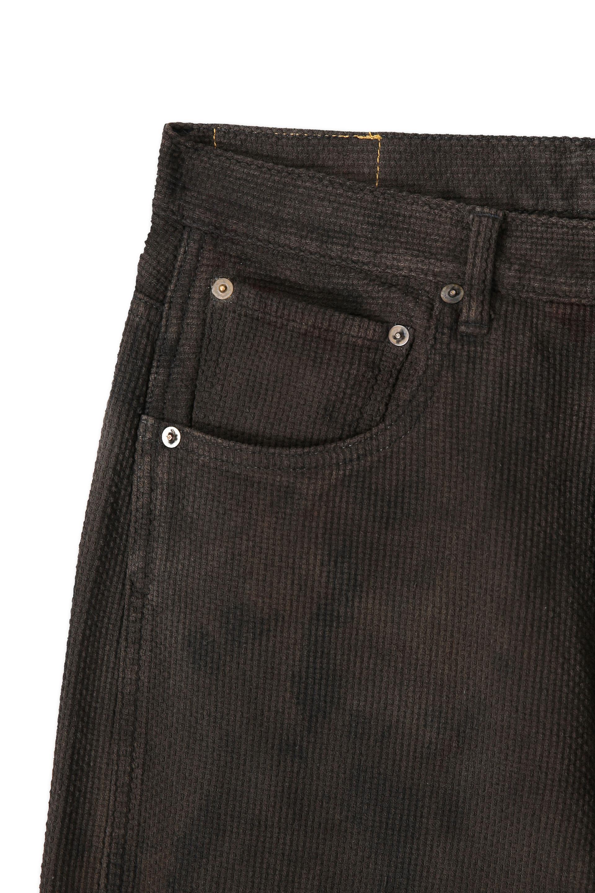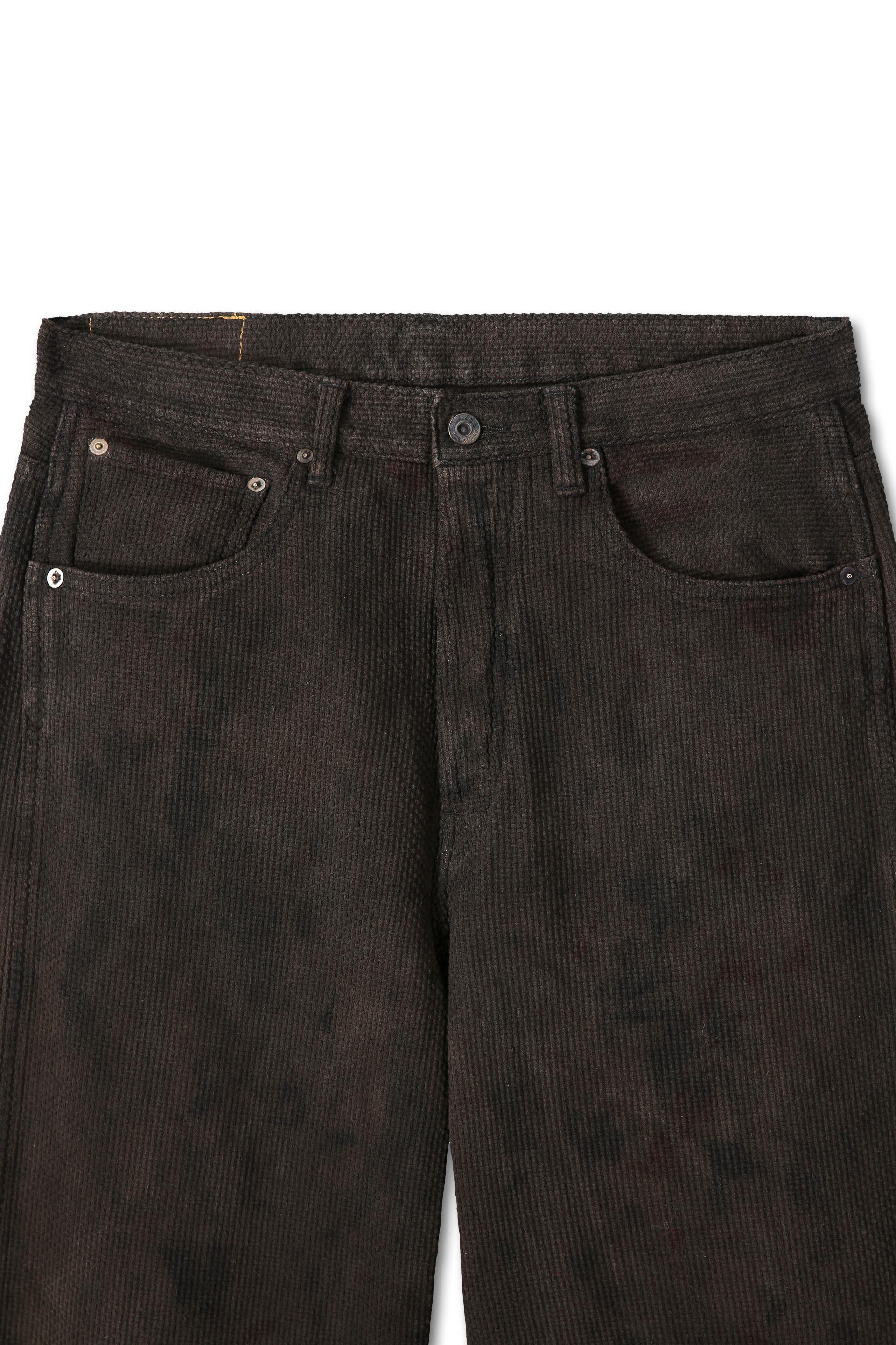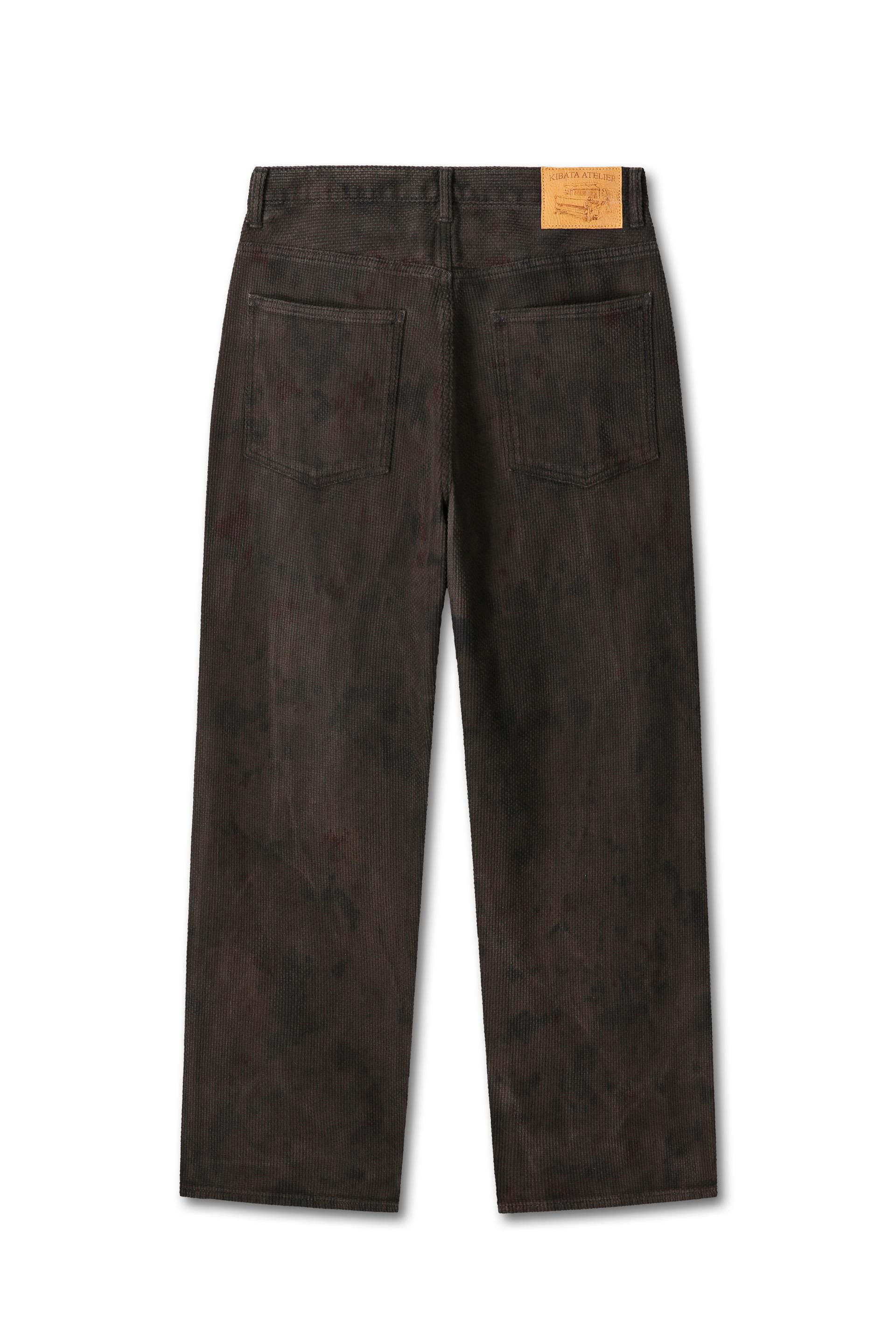 목화솜에서 방적한 원사를 별도의 사염 없이 직조해 만든 사시코 원단으로 제품을 제작한 뒤, 가먼트 상태에서 여러 가지 천연 재료로 염색한 작업물입니다.