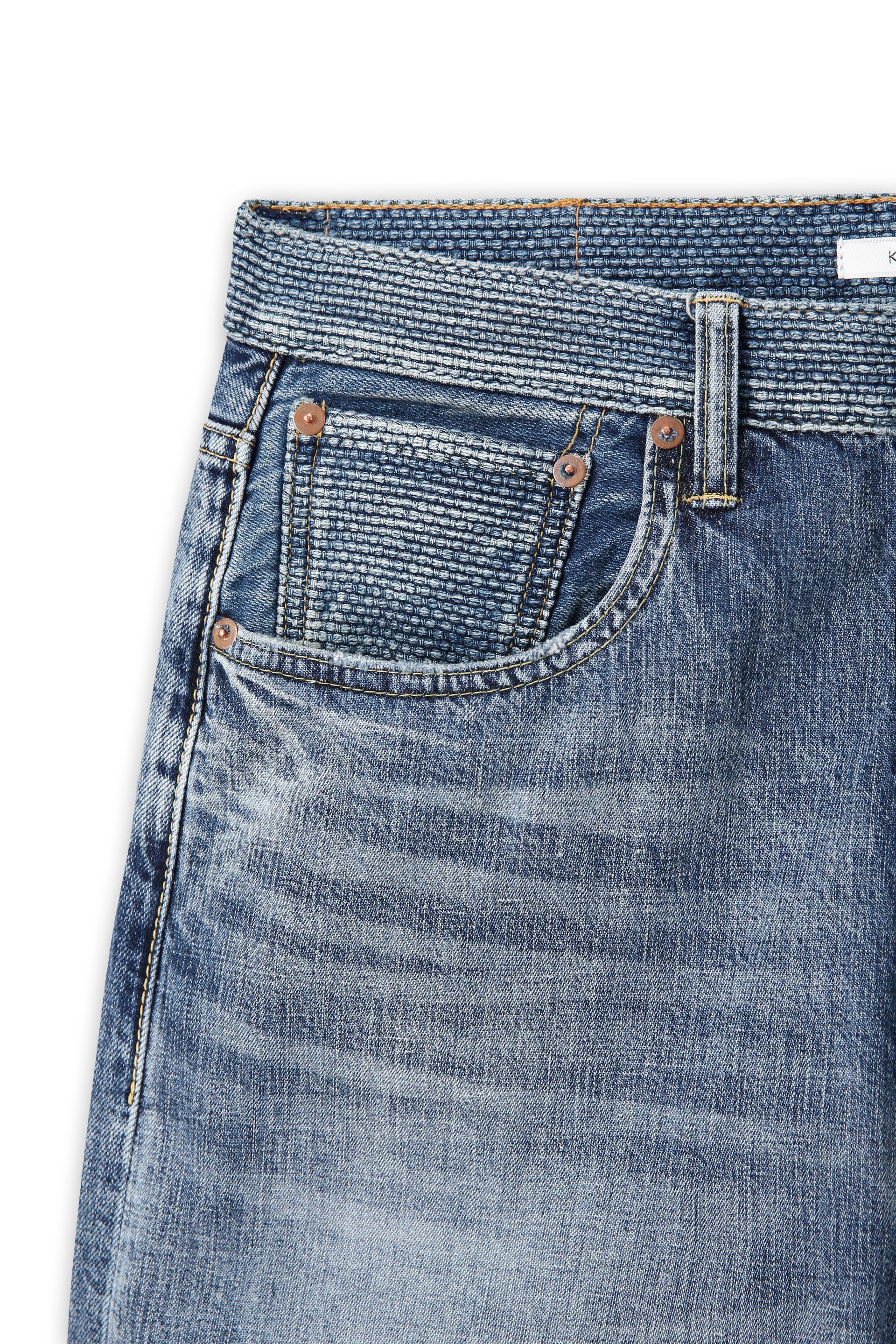 네 가지의 데님 외에 일본 전통 바느질 기법인 사시코(Sashiko)를 오마주 하여 제작된 원단을 사용하였습니다. 일본 에도시대 때 등장한 사시코는 자수 또는 바느질의 일종으로 널리 퍼지며 현재는 일본을 넘어 전 세계적으로 많은 사랑을 받고 있습니다.