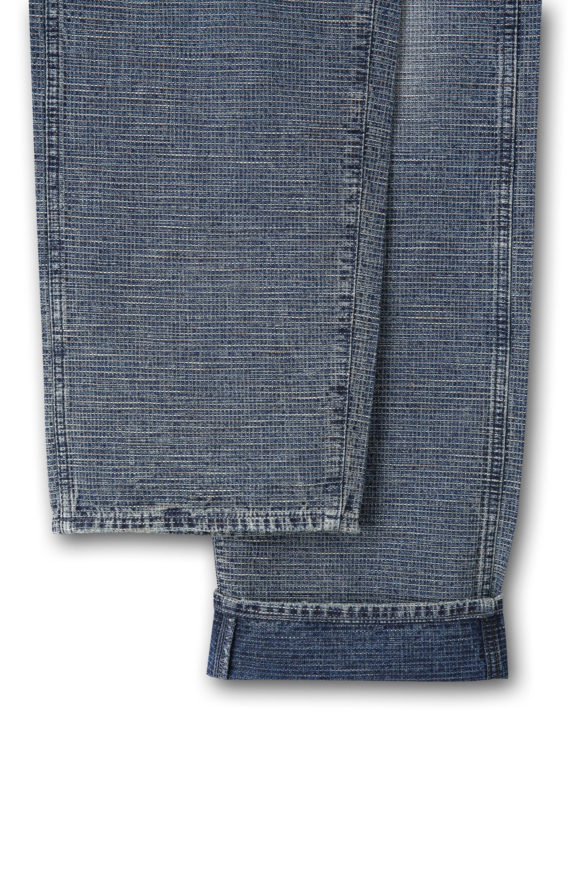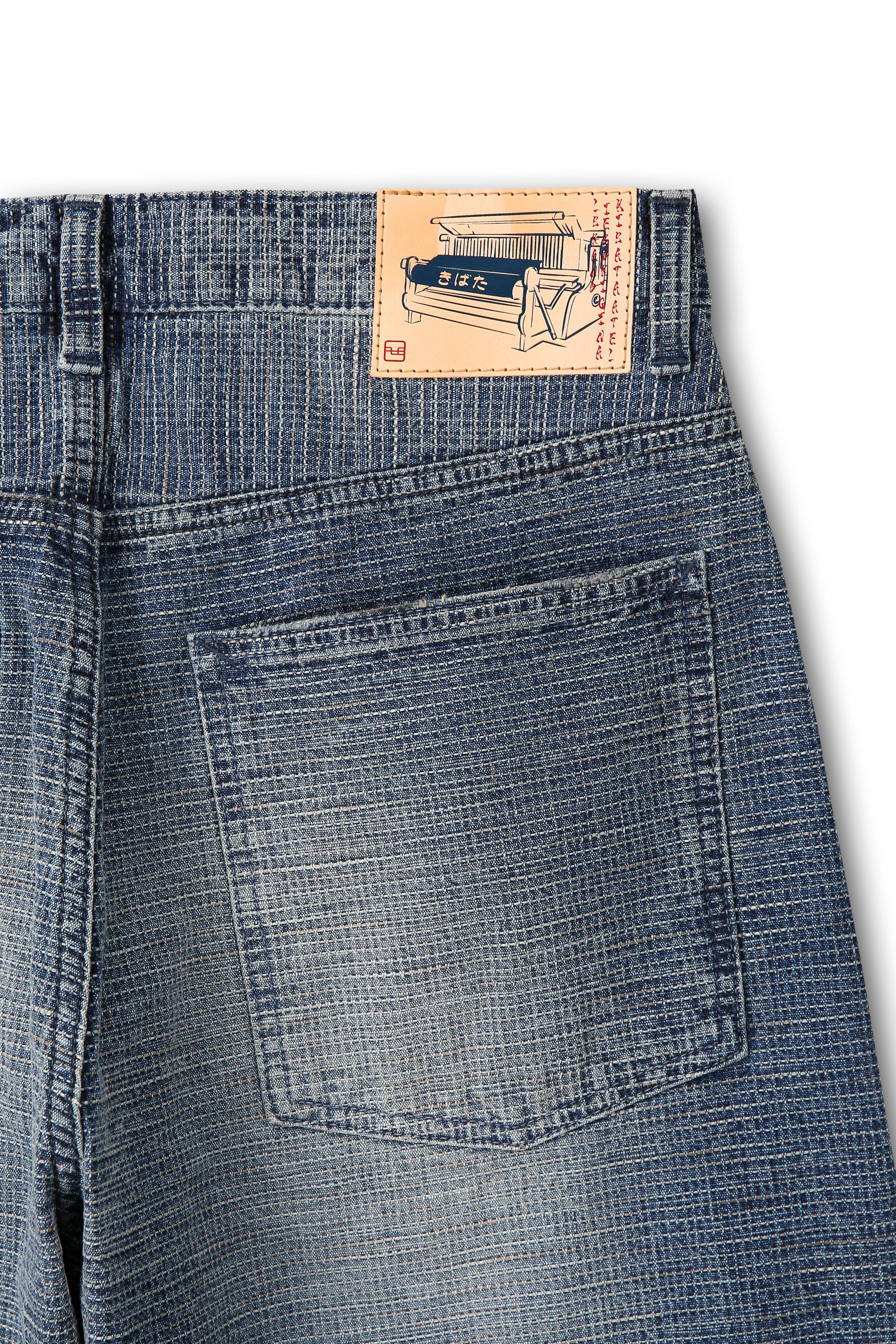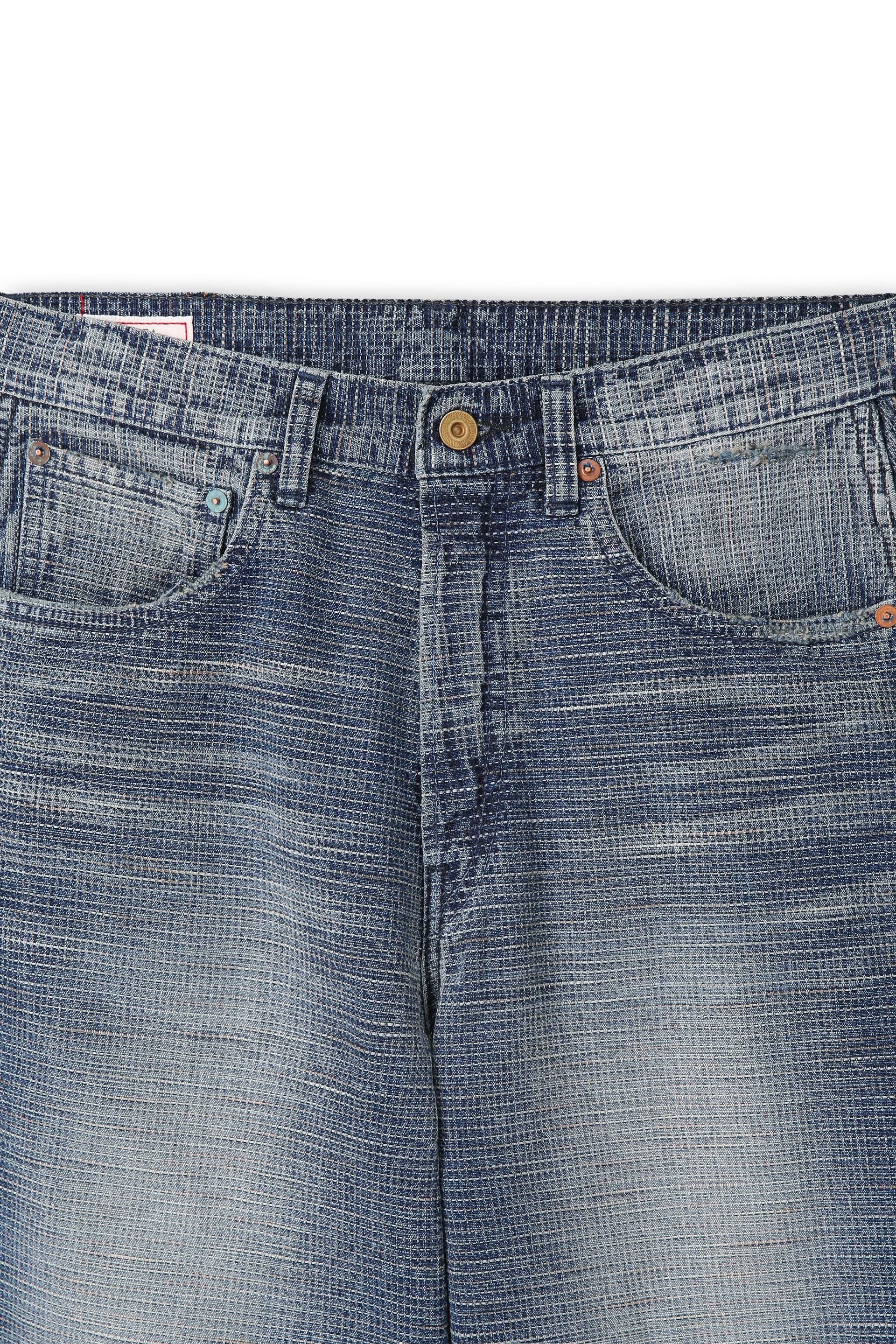 'Kashiko'는 'Kasuri'와 'Sashiko'의 합성어로 Kasuri 원사를 사용하여 Sashiko 기법으로 제작한 원단입니다. 키바타의 첫 오리지널 원단인 Kashiko는 실제 70년대에 사용하던 방적기로 생산한 원사를 바탕으로 그 시대의 인디고를 구현해 경사로 사용해 주었고, 흰색부터 검은색까지 약 6개의 컬러가 그라데이션으로 들어간 Kasuri 원사를 위사로 사용하여 제직하였습니다. 12 oz의 무게로 자연스레 드레이프 되는 것이 특징이며, 편안한 착용감을 느낄 수 있습니다.
