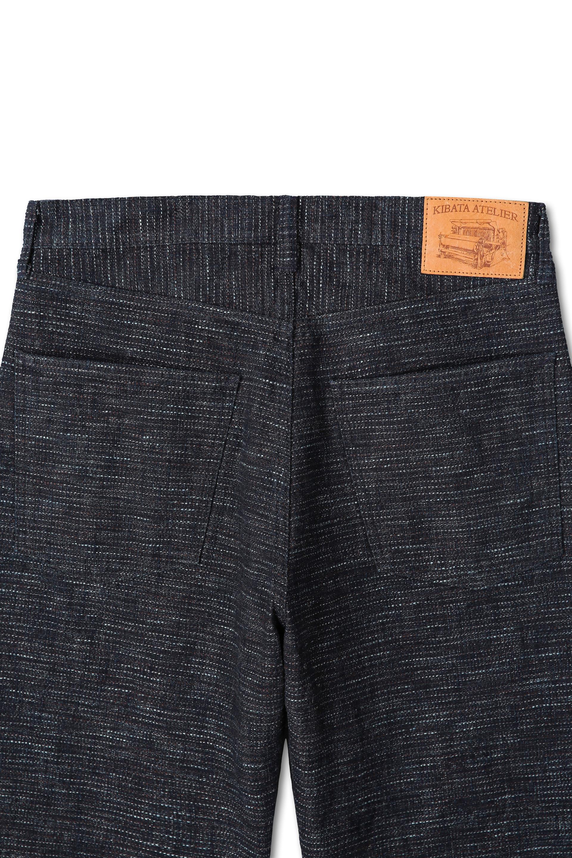 날실의 인디고와 씨실의 카키시부가 어우러져, 어둡지만 깊고 선명한 색감을 만들어냅니다.