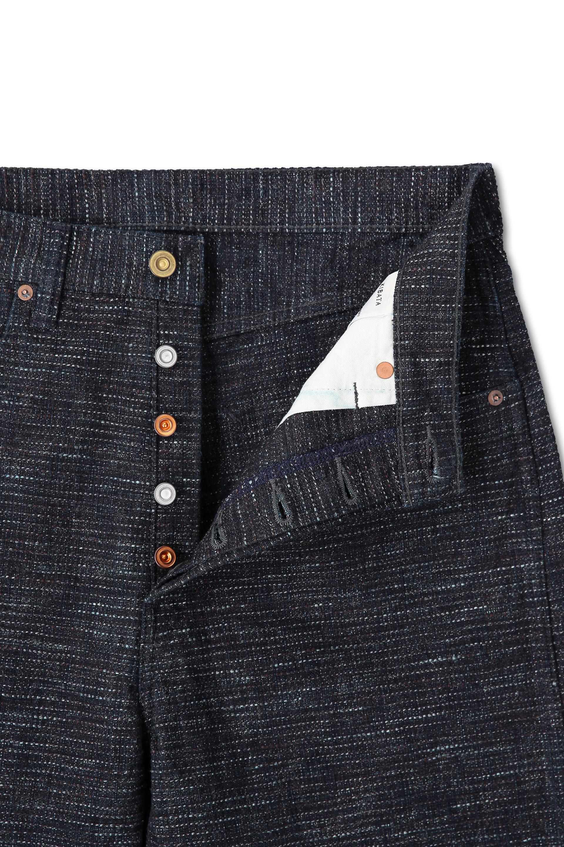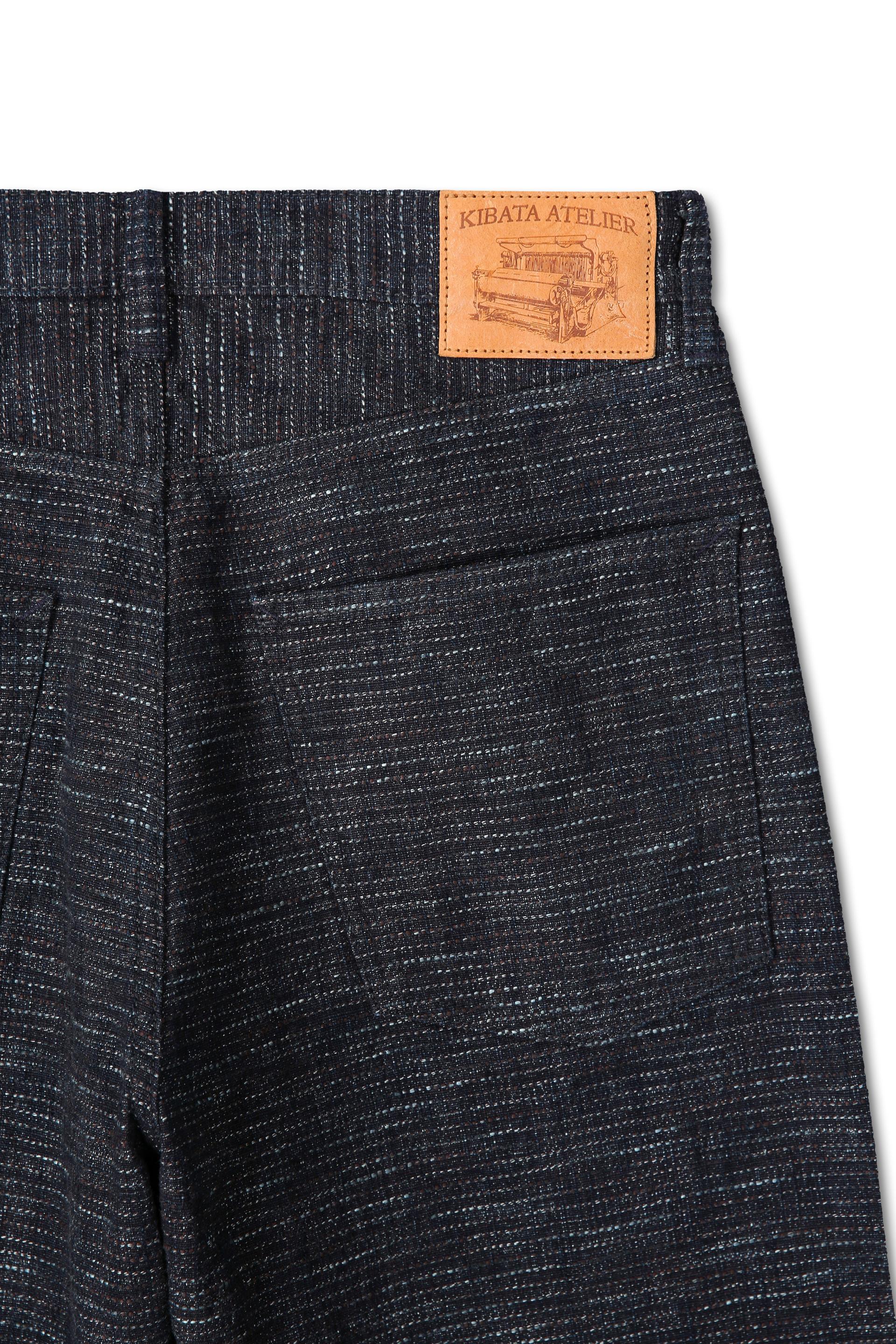 키바타의 오리지널 원단인 Shunko Kakishibu Kashiko는, 슈퍼 헤비 슬럽 원사인 ‘Shunko’를 경사에 사용하고, ’Kakishibu’로 사염한 ‘Shunko’를 ’Kasuri’ 원사와 트위스트해 새롭게 만든 특별한 원사를 위사에 사용해 제직한 원단입니다.