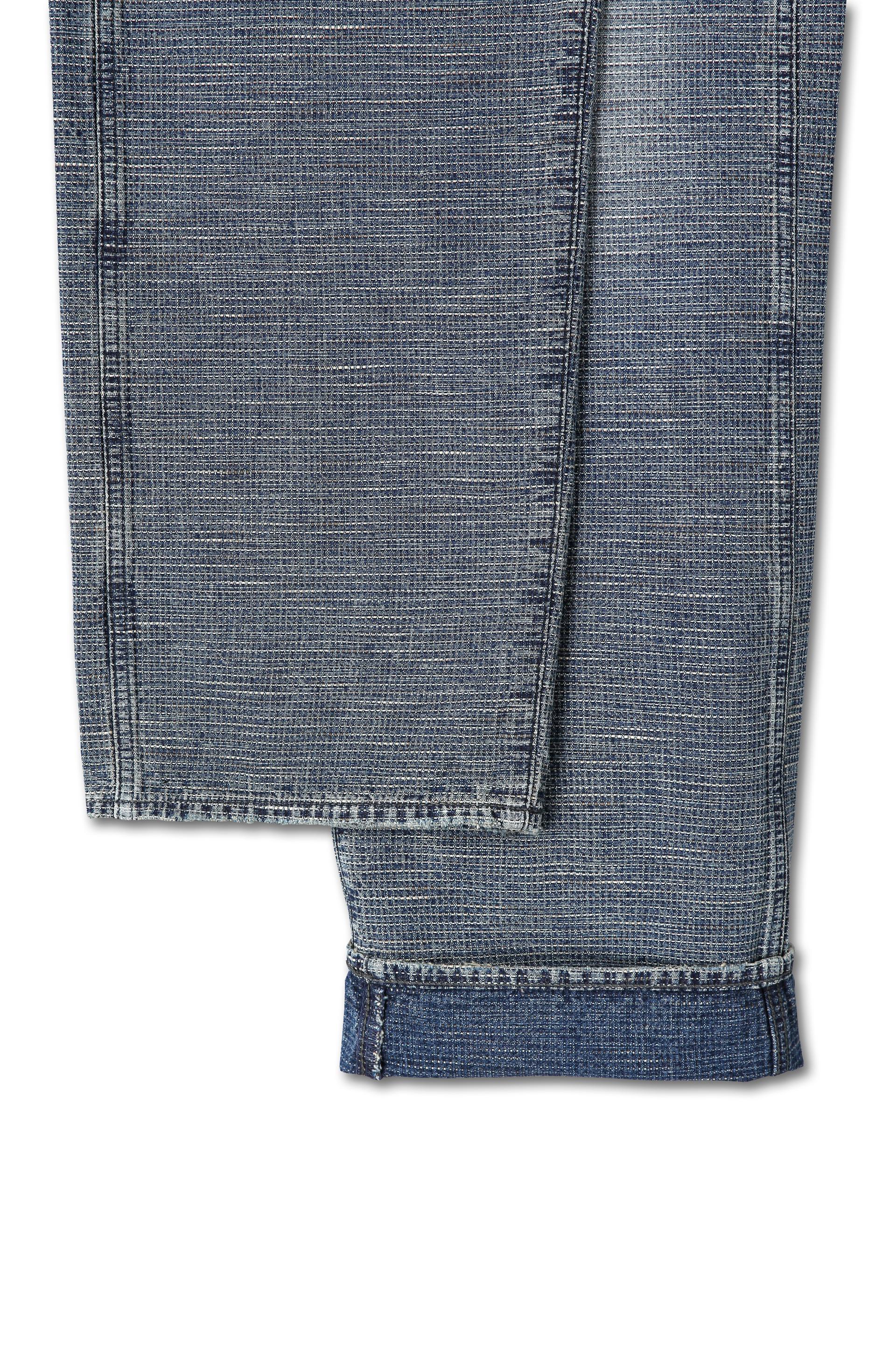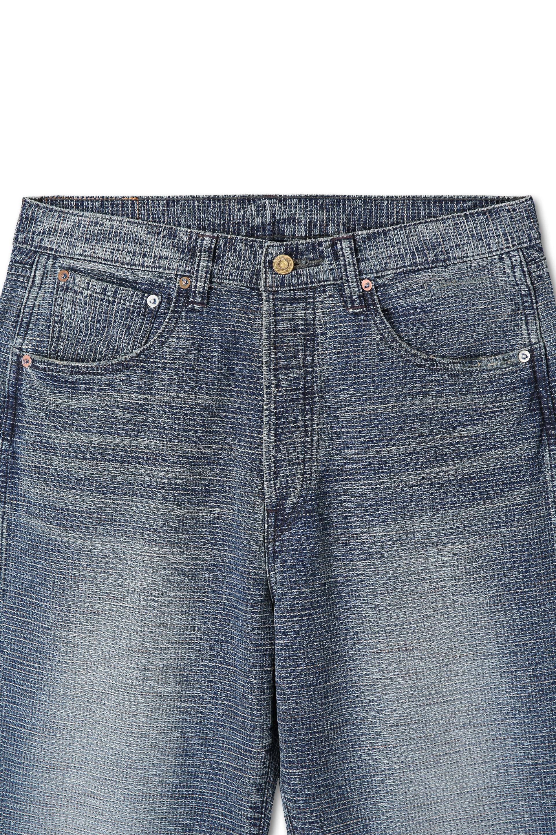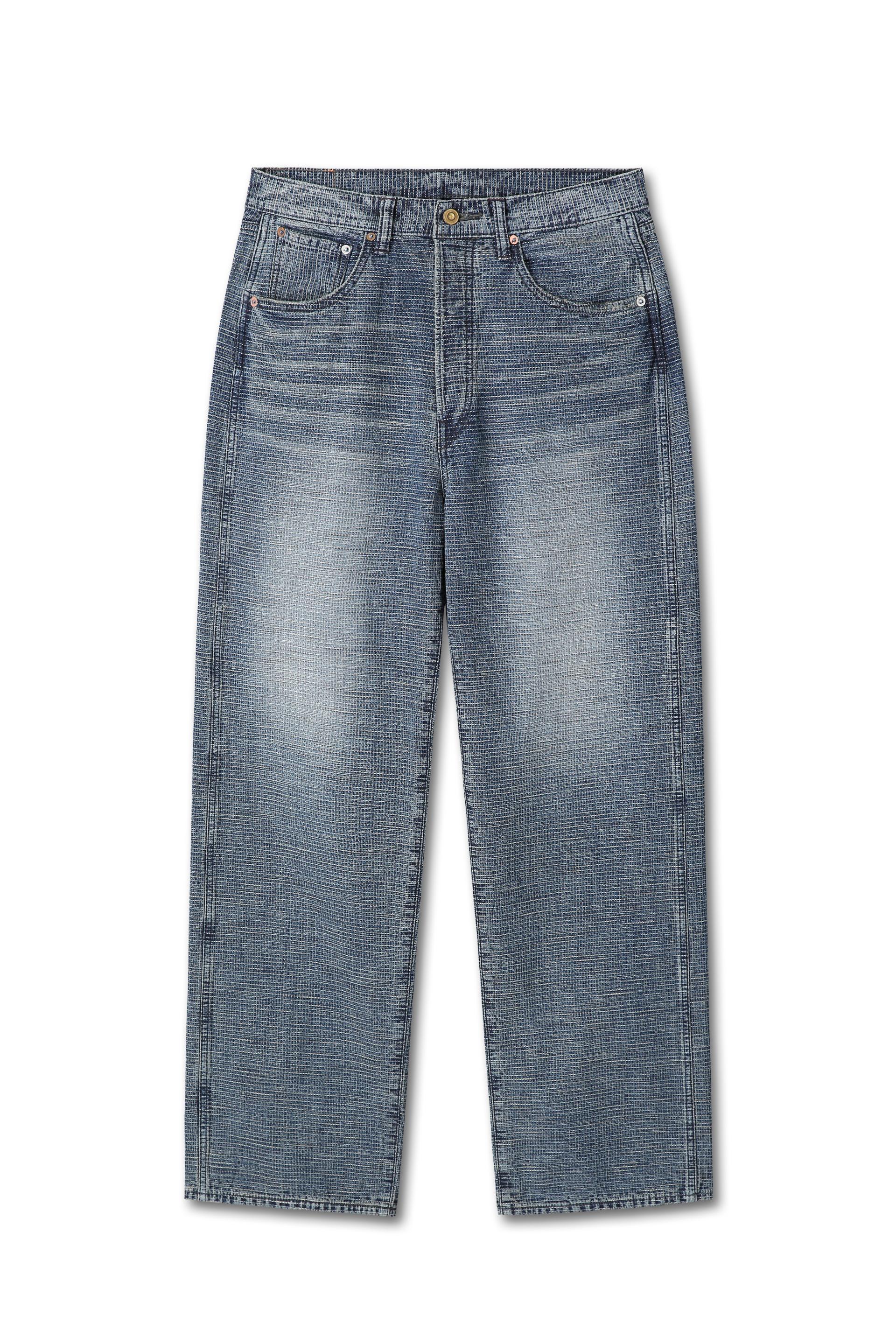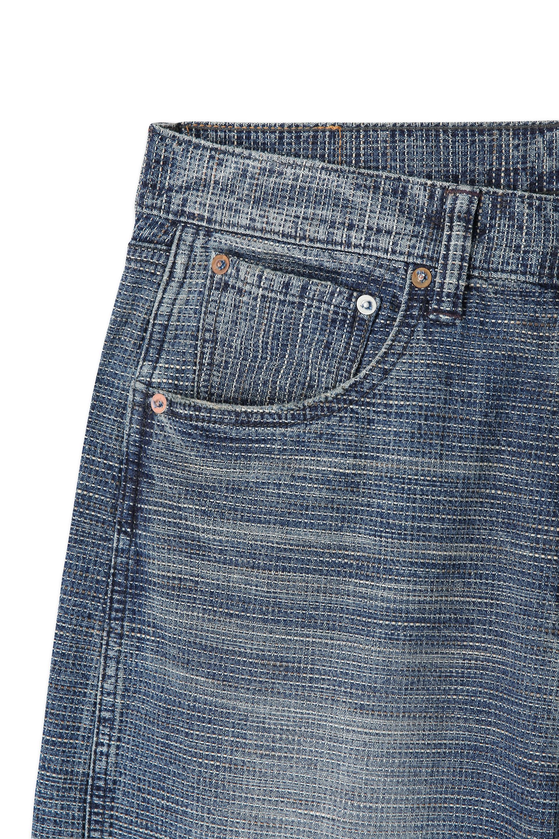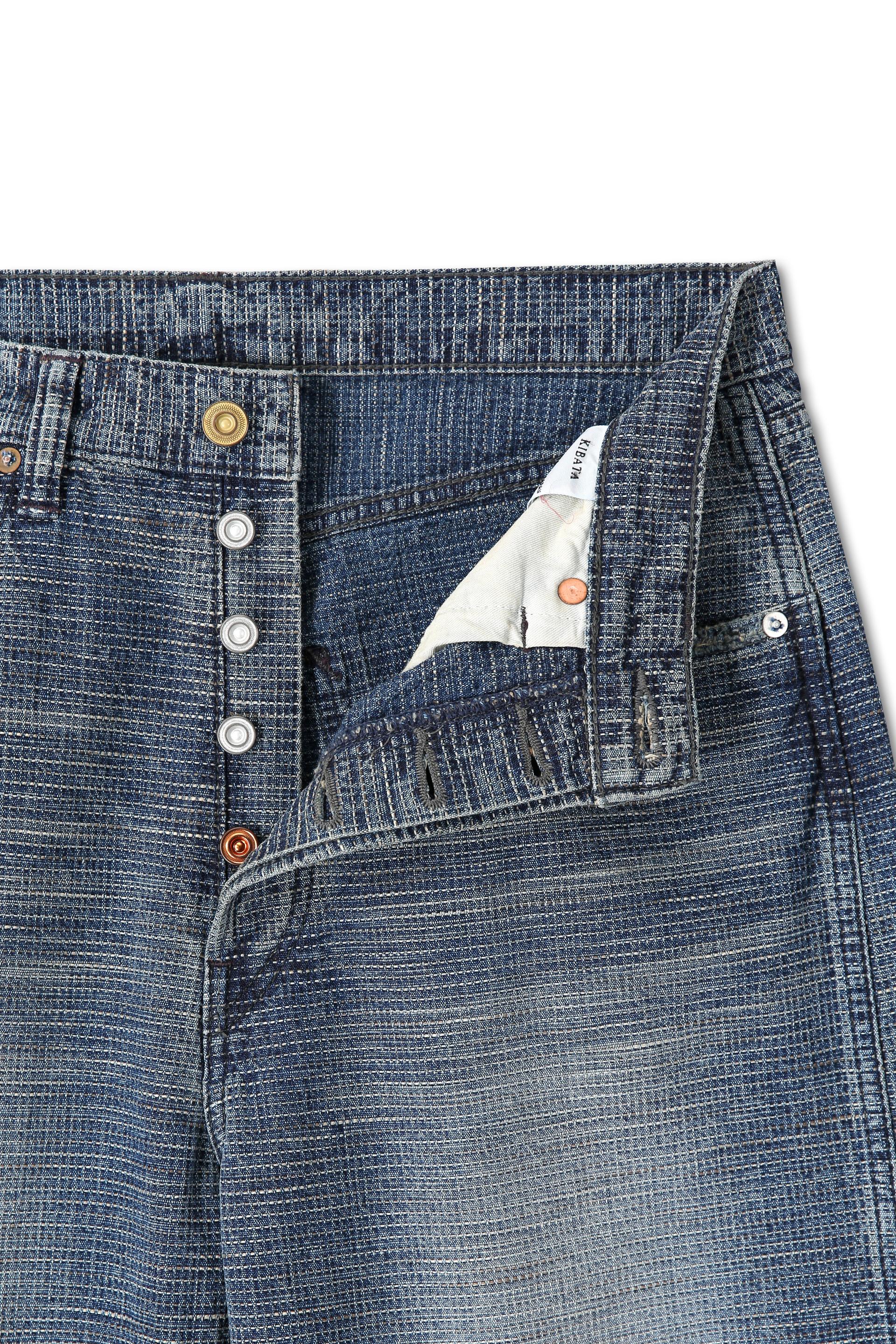 'Kashiko'는 'Kasuri'와 'Sashiko'의 합성어로 Kasuri 원사를 사용하여 Sashiko 기법으로 제작한 원단입니다. 키바타의 첫 오리지널 원단인 Kashiko는 실제 70년대에 사용하던 방적기로 생산한 원사를 바탕으로 그 시대의 인디고를 구현해 경사로 사용해 주었고, 흰색부터 검은색까지 약 6개의 컬러가 그라데이션으로 들어간 Kasuri 원사를 위사로 사용하여 제직하였습니다. 12 oz의 무게로 자연스레 드레이프 되는 것이 특징이며, 편안한 착용감을 느낄 수 있습니다.